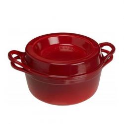 7. Poner en el fondo de una cazuela grande el tomate troceado. Colocar encima los calabacines rellenos de forma horizontal y ordenada. Poner un plato llano boca abajo para presionar e inmovilizar los calabacines.