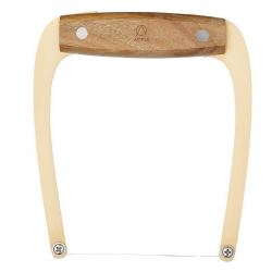 Si no tienes a mano un cuchillo estrecho o una lira, aquí tienes un truco: seda dental (sin cera ni sabor) para cortar quesos muy blandos como este. Simplemente coloca el queso sobre la seda dental en el punto que deseas cortarlo y levanta ambos extremos del hilo dental uno hacia el otro en un movimiento rápido y firme. La lira será mas fácil y cómoda pero la seda te sacara de un apuro.