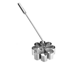 Remover ligeramente la masa y acto seguido, mojar el molde de flor en la masa pero sólo hasta media altura, (para luego poder desmoldar la flor en el aceite).