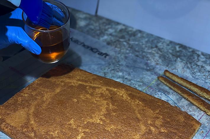 13.- Con la ayuda de un pincel, pintar la parte superior de cada bizcocho con el té.