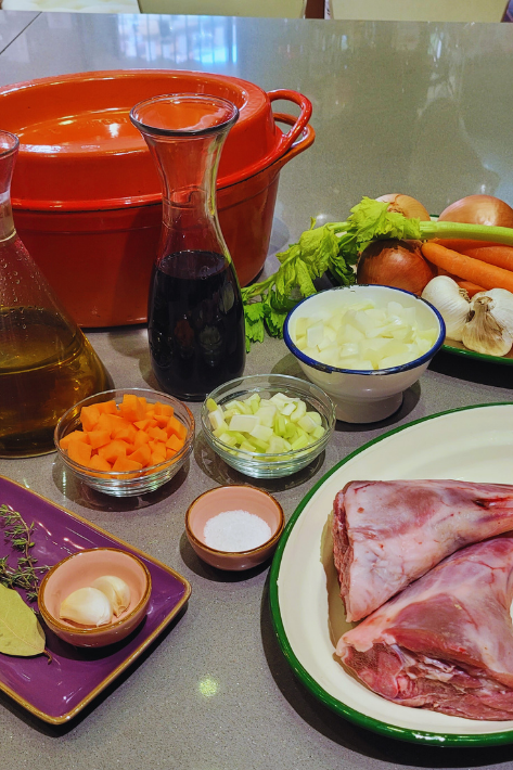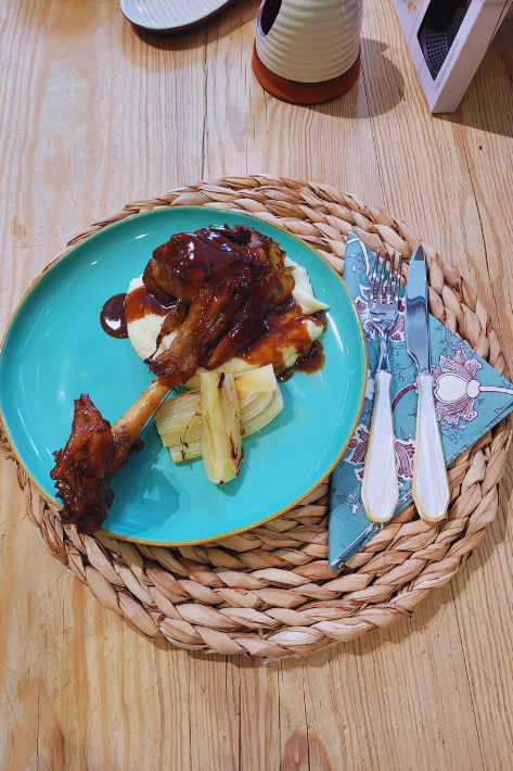 Los jarretes de cordero braseados con vermut son un homenaje a la cocina pausada, donde el tiempo y el calor trabajan juntos para transformar los ingredientes en pura sutileza.