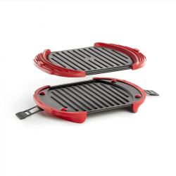 Además de las planchas metálicas, viene con dos “asas” y dos bandas de silicona, resistentes al calor. Con las asas podremos manipularlo de manera más fácil sin quemarnos y con las tiras, uniremos ambas planchas para que el alimento quede perfectamente presionado en el medio.