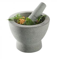 Los cocineros en Europa han utilizado, durante mucho tiempo, los morteros y mazos de cerámica para hacer, por ejemplo, pesto en Italia y picadas en España. Este material trabaja especialmente bien el ajo, nueces, hierbas y pan. Este es un mortero de capacidad reducida, por lo que es perfecto para pequeñas cantidades o para trabajar en tandas.