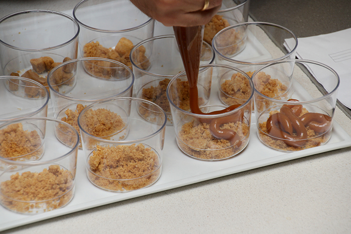 2. Después, con ayuda de una manga pastelera, ponemos una capa de toffee.
