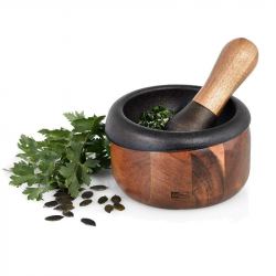 13.- En un mortero, majar el resto de ingredientes y aliñar con esto el repollo.