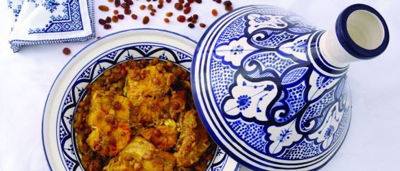 En este post te traemos una receta de tajine, recipiente de barro tradicional para elaborar los guisos más típicos de la gastronomía marroquí, además del nombre de los platos cocinados en este utensilio de cocina que consta de un plato, que puede ser de barro (el más común), hierro colado o acero inoxidable, y tiene también una tapa estanca en forma de chimenea. La forma del recipiente favorece una cocción perfecta para guisos aromáticos y especiados, ya que gracias a la forma de la tapa y los materiales del tagine, el proceso de cocción cuenta con más humedad, logrando guisos tiernos y jugosos y deliciosas salsas en su punto.