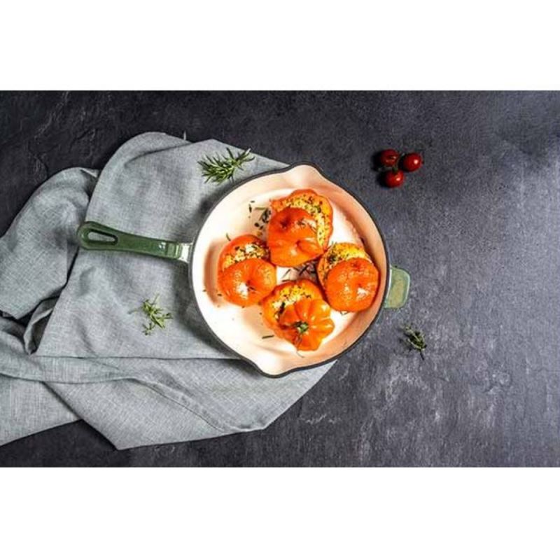 Sartén hierro fundido castard es perfecta para asar carnes, verduras o pescados con un resultado. Su material distribuye el calor de forma uniforme, conservando todo el sabor y creando ese acabado dorado característico de una parrilla
