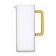 Jarra de vidrio borosilicato muy fino y de alta calidad, transparente y redonda, con pico vertedor y asa lateral en color blanco.