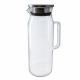 Jarra de vidrio recta y transparente, destaca su pico vertedor de forma especial para que el hielo y la fruta no se viertan junto con el líquido.