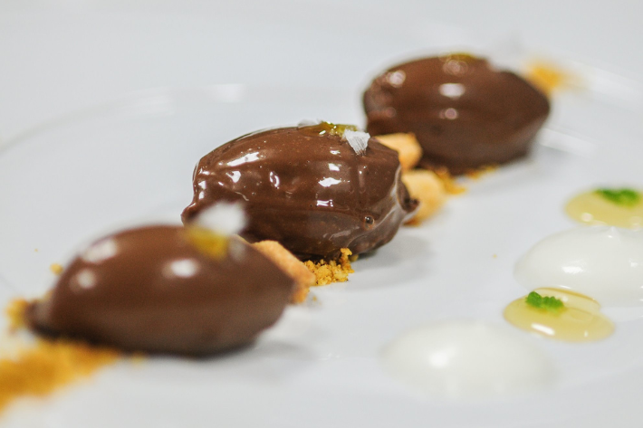 Postre: Cremoso de chocolate con almendras, ras el hanout y azahar