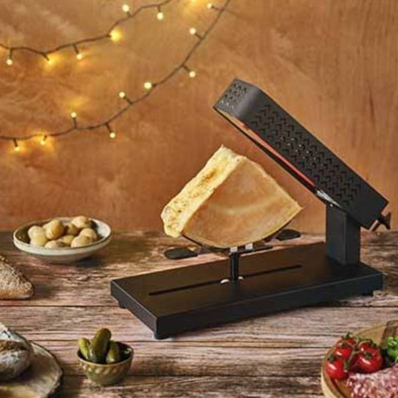 Raclette aspen fundir queso de manera uniforme y asar ingredientes al mismo tiempo gracias a su superficie superior caliente. Perfecta para preparar raclette tradicional, gratinar porciones individuales y cocinar verduras, champiñones, embutidos finos o pan tostado.