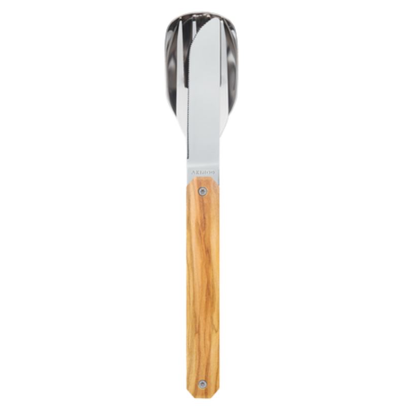 Juego de cubiertos imantados de 3 piezas en acero inoxidable 2CR14 con acabado espejo y mango de madera de olivo es perfecto para usar cuando llevas tu comida en un tupper, a la oficina, a clase, a un picnic o un viaje.