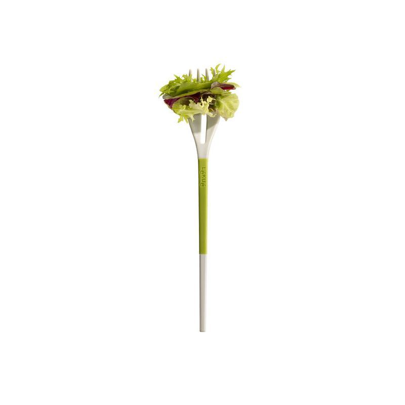 Twin One de Lekué en color verde, incluye un set 2 cubiertos (cuchillo y tenedor) de plástico, son unos cubiertos ideales para llevar o como cubierto de picnic, que tienen una doble funcionalidad ya que se montan y desmontan haciendo la función adicional de palillos orientales por el extremo opuesto.