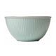 Bol esmaltado de color blanco por dentro y tono azul pastel por fuera.