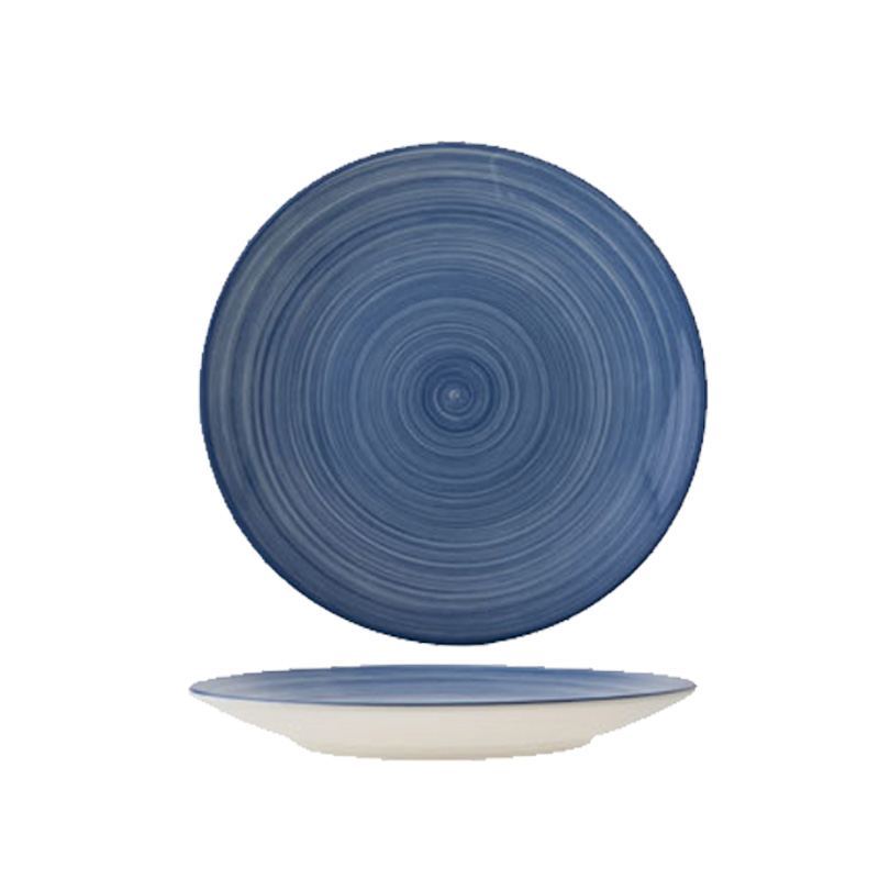 Original vajilla de 12 piezas con motivo en espiral azul fabricada en cerámica esmaltada.