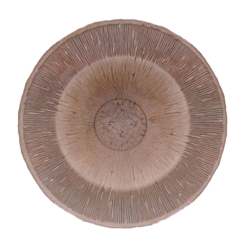 Fuente de cristal ó bajoplato con superficie lisa y relieve en la base a modo de jaspeado circular, haciendo un bonito efecto para presentar en la mesa.