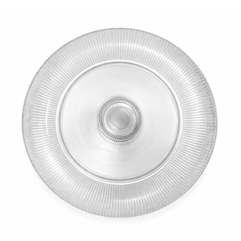 Esta pastelera de cristal con ondas cuenta con un tamaño 30x12 cm. Su diámetro de 30 cm permite colocar tartas completas de entre 8 y 12 raciones, bizcochos grandes, tartas de capas o cheesecakes sin que sobresalgan por los bordes. La altura total de 12 cm eleva la tarta lo justo para facilitar el corte.
