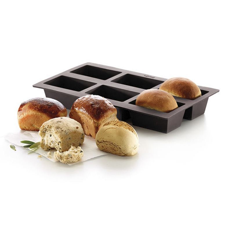 Molde de silicona rectangular con 6 cavidades de Lekué, perfecto para hornear panes, bizcochos y mini-cakes caseros.