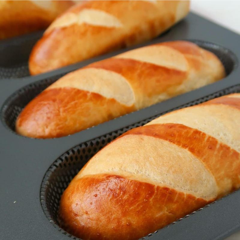 Molde para hot dogs antiadherente perfecto para preparar perritos calientes, pan casero, bollos tipo brioche. Te ayuda a darle esponjosidad por dentro y hacerlo un poco crujiente por fuera. Ideal para conseguir un horneado y acabado impecable.