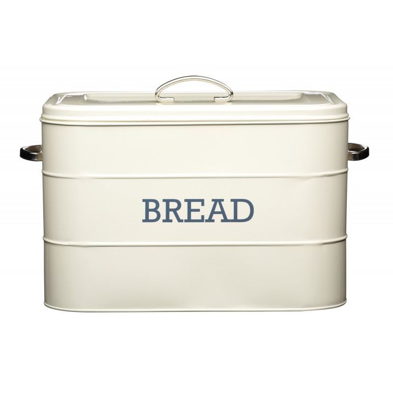 Panera de lata esmaltada en color crema estilo “Vintage” ideal para conservar el pan fresco durante más tiempo
