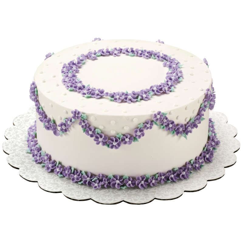 Esta bonita bandeja de cartón de superficie lisa y decorada con un diseño que simula la disposición de un ancho encaje o blonda circular, acomoda bien con tartas redondas de entre 20.3 cm y 22.8 cm, tartas escalonadas o casitas de jengibre.