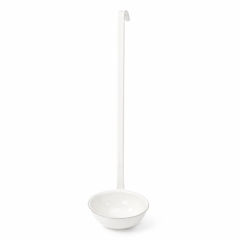 Cazo de servir, cacillo o cucharón de sopa esmaltado en blanco con estilo retro. Dale un toque especial a tu cocina con este cucharón de alta resistencia y duración.