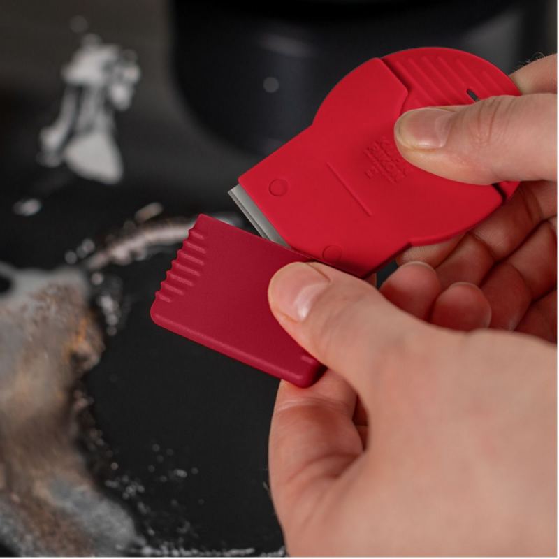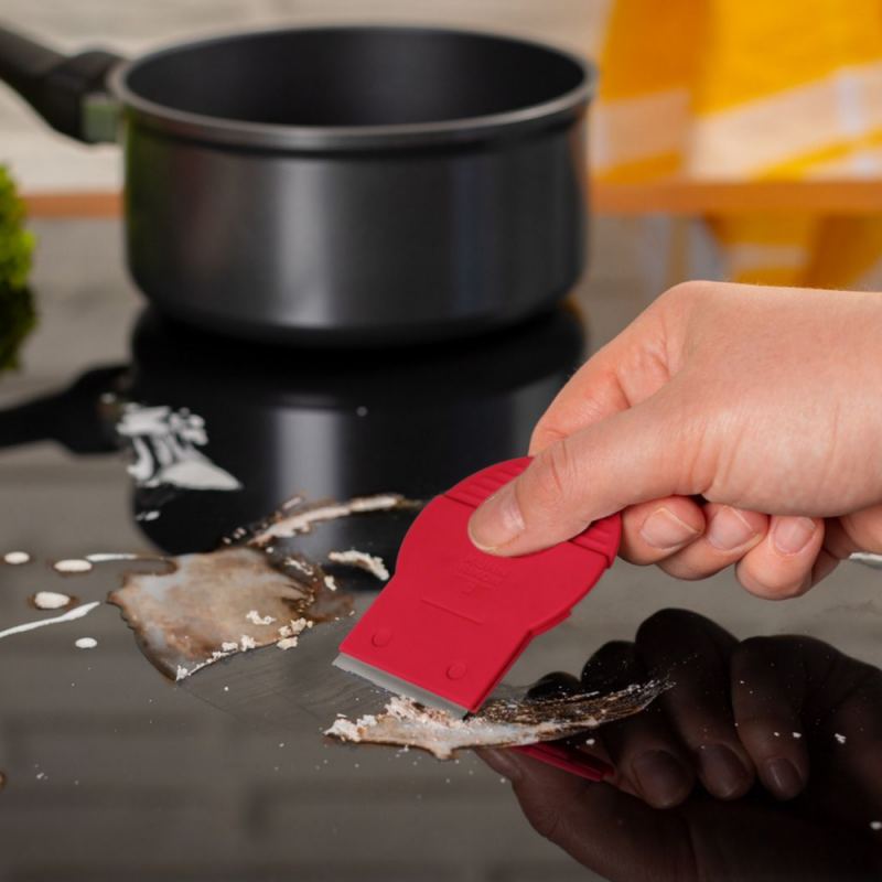 Para la limpieza de placas vitrocerámicas y de inducción. Pequeño tamaño con diseño ergonómico. Cuchillas sustituibles.