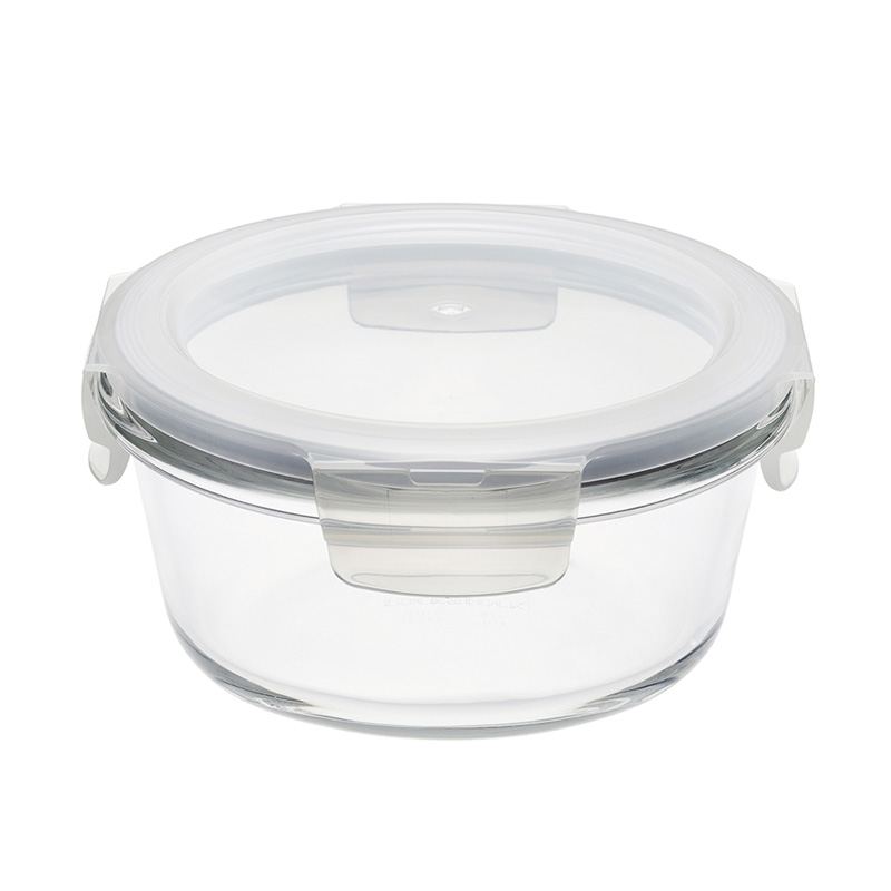 Tupper de cristal redondo fabricado en vidrio de borosilicato de alta calidad, perfecto para preparar, conservar y transportar en ellos comida para el trabajo o excursiones.