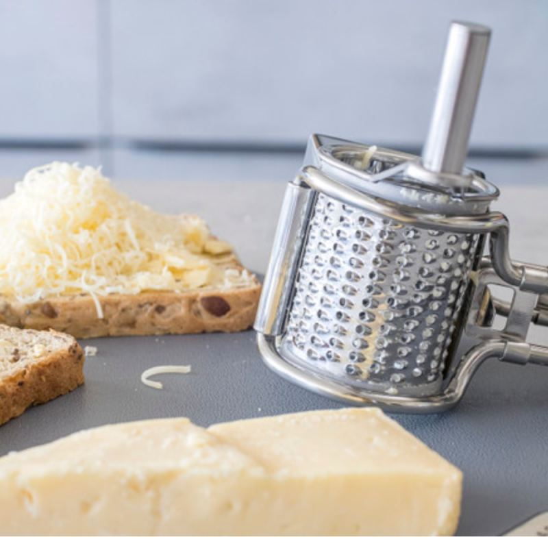 Rallador de queso rotatorio MasterClass Deluxe acero inoxidable inoxidable perfecto para rallar quesos duros y semiduros con facilidad gracias a su sistema de manivela ergonómica. Ideal para gratinar pasta, pizzas, ensaladas o preparar fondues.