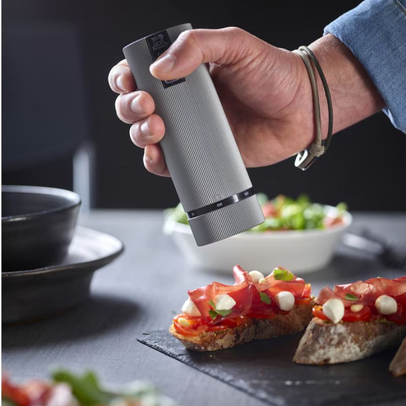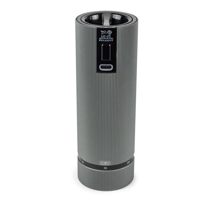 Molinillo de pimienta eléctrico Line Peugeot ideal para moler pimienta negra, blanca, verde, roja o semillas de cilantro de forma rápida y sin esfuerzo gracias a su funcionamiento eléctrico y su batería recargable.